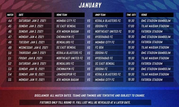 Fixtures for the first 11 rounds of the #HeroISL 2020-21 season are in!