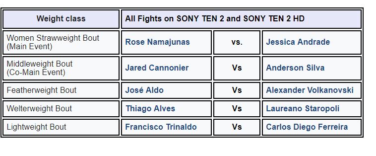 Namajunas, on the other hand, hopes to defeat Jessica for the second time and aims to grab the title. In view of Namajunas’ past few fights, it is evident that she has significantly developed her fighting skills combining technical kickboxing with her renowned world-class submissions. Namajunas has been a forerunner in every fight that she has participated in, which adds an edge to her approach against the likes of Andrade. This fight card is going to be electrifying as Both these fighters possess the knack to bring the fight to the finish with immense agility be it on their feet or on the ground.